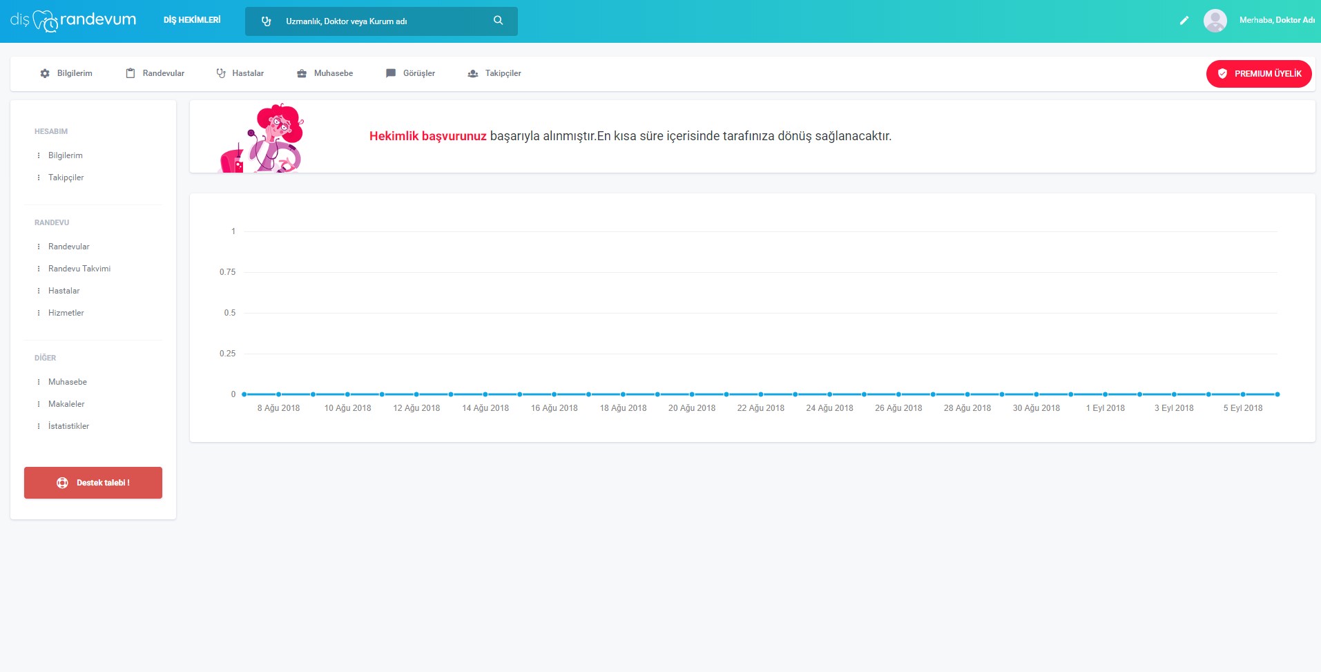 Tüm bilgileri girdikten sonra "AYARLARI KAYDET" butonuna tıkladığınızda işlemleriniz tamamlanarak diş hekimi paneline yönleneceksiniz. Bu sayfadaki yetkileriniz site yönetimi tarafından üyeliğiniz onaylandığında açılacaktır. Üyeliğiniz onaylandığında tarafınıza sms ve e-posta ile bildirim yapılacaktır.