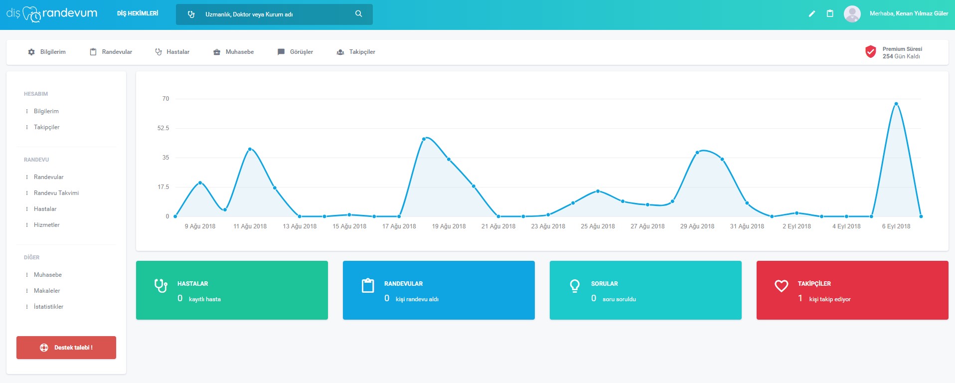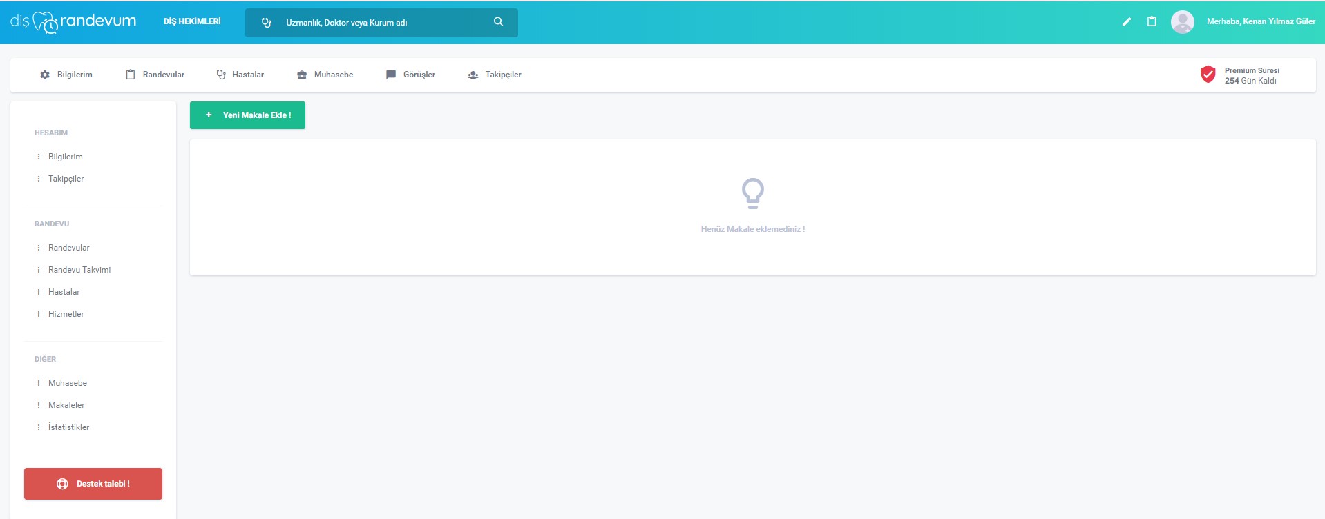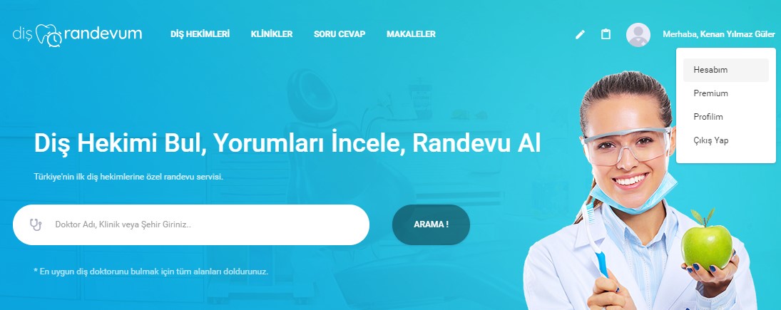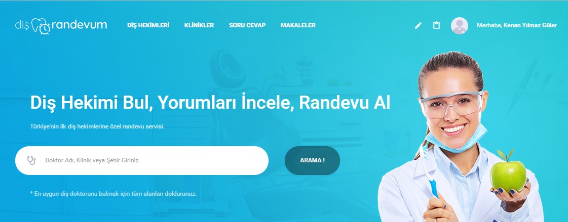 Diş hekimi hesabınızla sisteme giriş yaptığınızda sağ üstte ismini göreceksiniz. Solundaki kalem işaretine tıklayın.